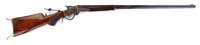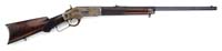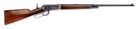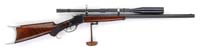 ALTERED WINCHESTER LEE NAVY MILITARY RIFLE. SN 10804. Cal. 236 Lee Navy. Military rifle with bbl reduced to 22” with orig square base front sight relocated & 2,000 yard military ladder rear sight. It has usual receiver markings without caliber marking on bbl. Stock is altered from full length military configuration with a slim semi-schnable tip & orig rnd knob semi-pistol grip with musket buttplate with trap. The butt has a military sling base and a modern sling swivel in forestock. CONDITION: Fine, as noted. Bbl & receiver retain 85-90% orig blue, thin on upper end of bbl with a few scattered spots of very light surface rust. Stock is sound & retains a custom oil finish. Mechanics are fine, strong dark bore that should clean better. 4-30295 JL6 (500-1,000)
