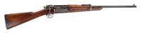 *FINE REMINGTON MODEL 30S BOLT ACTION RIFLE. SN 1614. Standard 24″ rnd bbl with front bbl band with dovetailed silver bead front sight with set screw. No bbl rear sight but fine graduated receiver peep sight. Mounted with straight grain, uncheckered American walnut with pistol grip stock and serrated Remington steel buttplate. Includes factory swing eyes and swivel and vintage military style leather sling. Action is the Enfield 1917 type. CONDITION: Very good. Bbl retains 90-95% original blue, front and middle bbl bands have flaked and silvered to 50-60%. Receiver and floor plate and trigger guard have 90-95% original blue with carry wear on the bolt release lever and peep sight. The oil finished stock is in fine, original condition with a comb mounted compass installed. Mechanics are crisp, bore is bright with some very minor scattered pitting. 4-33358 BT45 (500-1,000)