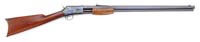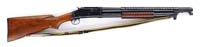 *WINCHESTER M1897 WWI TRENCH GUN. SN E674190. 12 ga. 20″ bbl. This shotgun falls in the proper SN range of a legitimate WWI Winchester Trench gun. It is the solid frame variety and comes with an orig cylinder bore. The bbl has the proper 3 milled grooves in the bottom near the muzzle for attaching the handguard/bayonet adapter. Buttstock thick wrist, low comb, WWII version. The Winchester lower sling swivel appears to be orig and assembled with factory quality. The buttplate is an orig black checkered plastic with Winchester Repeating Arms Company logo. The slide bar is properly marked “M1897 WINCHESTER TRADEMARK REG IN U.S. PAT. OFF”. The handguard/bayonet adapter is a high quality reproduction WWII-style with four rows of holes. It is not marked and comes with a bead front sight. This shotgun features a number of orig WWI trench guard components as well as a WWII Era butt stock. Shotgun comes with an orig WWI Kerr NOBUCKL Web Sling. CONDITION: Very fine. Shotgun retains approx 93-95% of what appears to be professional grade refinishing. Some areas of very fine, scattered pin prick pitting. Buttstock has some scattered light dings and handling marks but is quite solid. Bright bore, needs a cleaning. Mechanics are crisp. 4-59934 CSW28 (1,500-2,500)