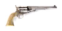 MODEL 1861 RICHMOND RIFLED MUSKET. SN NSN. Cal. 58. This early 1861 Richmond still retains the Model 1855 hammer and a surcharged US Model 1855 buttplate. Mr. Michel describes this gun further as follows: “This rifled musket represents the first type assembled with parts taken from Harpers Ferry after the capture of the arsenal and armory by Virginia state troops at the outset of the war. The lockplate is marked ‘Richmond Va’ indicating it is one assembled after movement of the parts to that city but still using old parts, as bbl uses the Model 1855 long-range rear sight not produced at Richmond. Lockplate itself has been modified, again subsequent to orig assembly by being ground at the hump top to level the plate to the contour of the stock, much like the plates subsequently produced at Richmond”. CONDITION: Bbl is brown and apparently refinished. No rifling is visible in bore. Stock is restored from rear band forward as are ramrod, nosecap, and bands. Buttstock has old repair at wrist. Blacksmith-made ramrod appears orig to era. Long-range rear sight is replaced. Accompanying ramrod is pitted on socket and blade is gray with scattered staining and pitting. 4-31241 JS153 (3,000-5,000)