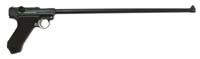 *SCARCE RUGER BLACKHAWK FLATTOP SGL ACTION REVOLVER. Cal. 44 Mag. SN 2613. Blue finish, 6-1/2″ bbl, adjustable micro rear sight, and flattop frame with 2-pc nicely figured walnut grips with black eagle medallions. Accompanied by an orig black & yellow 2-pc box for this revolver. CONDITION: Fine to very fine. Overall retains 92-94% strong orig factory finish with some thinning on the left side of the bbl, muzzle edge wear & light wear elsewhere. Grips are fine and retain 96-97% orig varnish. Mechanics are fine, unaltered, bright shiny bore. Box is soiled with a blown corner. Pierre Renaud Collection 4-55747 JR366 (400-700)