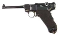 *WALTHER MODEL 9 SEMI AUTOMATIC PISTOL. SN 620903. Cal. 25. 2” rnd bbl. Standard markings on both sides of the slide. Crown over “N” proof marks. Steel circles with dots on grip. The brown leather holster is unmarked. CONDITION: 95% bright blue with wear at the muzzle and along the sharp edges. Slight pitting along the backstrap. Grips are matching and are fine. Holster is scuffed with minor cracking but is still good. Spare magazine pouch is empty. 4-55298 FS258 (200-300)