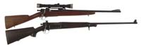 *LOT OF TWO SMITH & WESSON DA REVOLVERS. Cal. 38 Spcl. (1) Model 36 Chief Special. SN J385188. Blue finish with 2″ bbl, fixed sights, with checkered medallion grips. CONDITION: Good. Overall retains about 75-80% orig finish, broken hammer spur and worn oil stained grips. Mechanics are fine, bright shiny bore. (2) Model 10-5 M&P. SN D279935. Blue finish, 4″ bbl, fixed sights, checkered medallion magna grips. CONDITION: Very fine plus. 96-97% bright orig finish overall, fine grips, crisp mechanics, bright shiny bore. Pierre Renaud Collection 4-55765 JR345 (300-500)