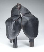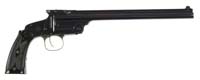 RARE LE PROTECTOR FRENCH PALM PISTOL. Cal. 22 Short. SN 911.12 Built similar to the famous Chicago Palm Pistol but in a reduced size. Nickel finish with 1-1/2″ oct to rnd bbl with smooth gutta percha side plates with the left side having a center escutcheon marked “LE PROTECTOR / SYSTEME E. TURBIAUX”. This little pistol, unlike the small front trigger safety of the Chicago Palm Pistol, has a sliding safety around the rear circumference that, when engaged, blocks the squeezer lever from completing its travel. CONDITION: Fine plus. Metal is cleaned bright but retains 75-80% orig nickel with some light pitting on the bbl and a little heavier pitting on the squeezer handle. Mechanics are all orig & fine. Smooth bore is bright with scattered pitting. 4-57183 JR553 (1,000-1,500)