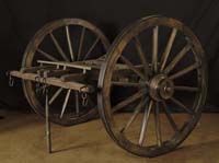 CHARLES PARKER COUNTERTOP MODEL 700 CAST IRON COFFEE GRINDER. Larger version of the above with 16-3/4” diameter wheels with wooden crank handle. Overall dimensions are about 22-1/4” high by 12-3/4” wide, not including the handle and mounted on an 11-1/4” square oak base with white porcelain pull knob on drawer. The body of the mill, hopper and spokes are painted red. The cast iron base and sides of the wheels are dark green with gold highlights and gold painted edges. The hopper has hand painted floral panels. CONDITION: Very fine plus. Overall retains most of its orig slightly oxidized paint. Base and drawer are fine and it appears completely functional. 5-60530 JR798 (1,000-2,000)