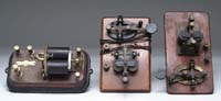LOT OF TWO CHARLES PARKER COUNTERTOP CAST IRON COFFEE GRINDERS. Two small grinders 200 size. One quite early without size markings. 1)Early model about 13-1/2” high X 6-13/16” wide not including wooden handle. It is mounted on a 7” square wooden base and has a wooden front tin drawer. The body of the grinder has old dark red paint as does the spokes with black rims. CONDITION: About good. A little loose but functional and appears complete. Retains about 75% orig paint. 2)About 12-1/2” high X 9-3/16” wide not including the handle, with red and blue paint on a 6-3/4” square base. It has a cast iron drawer front but is missing the drawer and has been turned into an electric lamp. CONDITION: As noted, otherwise very good. Paint is moderately faded otherwise appears functional. 5-60528, 5-60534 JR802 (750-1,250)