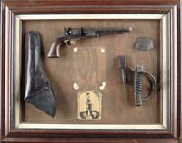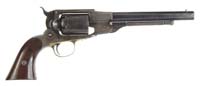 PLANT 3RD MODELCUP FIRE REVOLVER. SN 6955. Cal. 41. 5-½” oct. bbl. Marked “MERWIN & BRAY. NEW YORK” on top of the bbl. There are also patent marks around the center of the cylinder but these are only about half readable. Ejector rod is replaced. CONDITION: Faint traces of blue in protected places on the bbl. Mostly brown patina with even light pitting and some scale. Grips are heavily worn but retain good traces of varnish. Mechanically fine. 4-56991 FS17 (400-600)