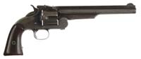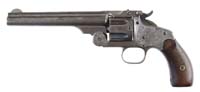 PAIR OF SMITH & WESSON NUMBER 2 ARMY REVOLVERS. 1) SN 1521. Cal .32 RF. 5” oct bbl. Standard marking on top of bbl, patent dates around the center of the cylinder. Sgl pin in top strap. This is a very early gun well within the Civil War range. CONDITION: 20% blue overall mixed with light surface rust and pitting. There is a saw cut at the top of the right grip. Mechanically needs adjustment. 2) SN 461. Cal .32 RF. 6” oct bbl. Two pin top strap. Grips, hinge screw, ejector screw and other parts are replaced. CONDITION: Heavily cleaned with moderate pitting remaining on the frame and cylinder. Minor chips at the base of both grips. Mechanically needs wor.12 4-56843 FS21 (1,000-2,000)