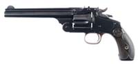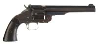 SMITH & WESSON 1ST MODEL 3RD ISSUE SPUR TRIGGER REVOLVER. Cal. 22 Short. SN 56516. Blue finish, 3-3/16″ keyhole bbl, 7-shot cylinder & rosewood bird head grips. CONDITION: Fine plus. All matching including the grips. Overall retains 75-80% orig blue, strong on the frame, thin on the bbl & cylinder. Good mechanics, strong bright bore with scattered pitting. Roger & Gerald Wilde Collection 4-55364 JR353 (300-500)