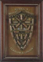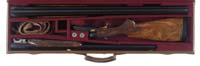 LOT OF TWO LARGE PARKER FLOOR MOUNT SHOWCASES. Made of fine walnut or oak measuring approx. 65-1/4″ wide x 85-3/4″ high x 18″ deep with full glass fronts over cabinet bottom. Glass lifts for access to the approximate ten guns that can be displayed. Anyone who ever visited Jim Parker’s office in Chattanooga knows these cases well. He had them custom built just for his office. CONDITION: Extremely fine, very heavy but can be moved. Comes apart in two pieces. 5-60506 (500-1,000)