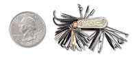 Diminutive folding knife with 40 blades. Seven of these blades marked Rodgers including the gold plated knife and gold plated fork fruit blades. Made by Joseph Rodgers & Son Sheffield England, about 1850 and purportedly for the 1851 Crystal Palace Exhibition in London. This is an extraordinary exhibition knife, that would have been made by Joseph Rodgers most senior master cutler,and he may have spent well more than a year on this project. Of the 40 blades they include a hack saw, a wood saw, 3 corkscrews of differing sizes, several phieners or blood letting blades, a button hook, a sewing awl and several lances for lancing boils. The two back covers also double as picks for cleaning horse hooves. The overall length closed is .956″. There is a flat blade screw driver on the bolster end in the middle of the frame that is usable when all the blades are closed. The scales or handles are manila gold lipped carved mother of pearl shell that is now extinct or nearly so. The Scales are beautifully carved and are in perfect condition with no chips or damage. This is a true rarity as most scales such as these have little survival in prime condition. This is a rare opportunity to own a piece of the finest mechanical art known. CONDITION: The condition is absolutely outstanding. No damage or degradation exist. The Gold plate is full with no loss. The exhibition quality carved mother of pearl scales are not chipped or flaked. The mechanics are crisp and lock up distinct. This is a wonderful find and was previously the centerpiece of a world renown miniature collection. 51440-1 TDW (40,000-60,000) – Lot 1472