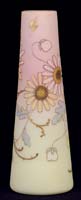 PHOENIX GLASS VASE Pretty Phoenix glass vase is surrounded with yellow flowers with bluish-green centers and brown stems, all done against a creamy white background. SIZE: 11″ t. CONDITION: Very good to excellent. 5-65157 (100-300)
