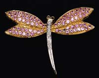 JEWELED FAIRY LAMP R-224. Fairy-size cased pink satin dome with four faceted inset jewels sitting in a matching base with outward fluted rim. SIZE: 5-3/4″ t. CONDITION: Very good to excellent. 5-65489 (200-350)