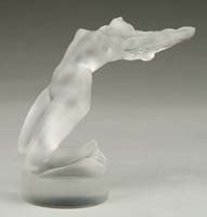 BACCARAT FAIRY LAMP Ruf fig. 215. Rose teinte dome and base in a pressed crystal Pinwheel pattern. Interior of base contains two raised rings and is marked “Baccarat Depose”. SIZE: 4-1/4″ t. CONDITION: Very good to excellent. 5-64571 (350-500)