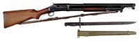 *ECLECTIC COLLECTOR’S LOT WITH SAVAGE 6A .22LR RIFLE, 4 BAYONETS, 1 POWDER FLASK AND 1 SHOT POUCH.