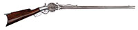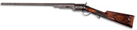 SN 620. Cal. 50. 26″ oct bbl, marked “ADDRESS / P.W. PORTER / NEW – YORK” and “P.W. PORTER’S / PATENT. / 1851.” This is a relatively fine example of one of the most unusual of American made arms that has had a lot of interesting legends written about it. One colorful anecdote published which has proven to be untrue is that the inventor was killed while demonstrating this rifle to Col. Colt. In actuality, over 1000 of these most interesting and well made rifles were made in several configurations. This gun characterized as a 2nd Model and representing about 1/3 of the production has 9-shot cyl, mule ear hammer, Winchester style serpentine shaped cocking lever, with sights offset to the left. These guns rarely are offered in orig functioning condition such as this example. CONDITION: Very good overall. Markings are fine and well discerned. All major parts noted have matching SNs. Mechanics are functional with well discerned rifling in pitted bore. 53088-1 JS (5,500-7,500) – Lot 1380