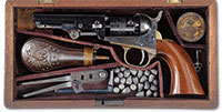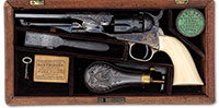 EXTREMELY FINE AND ELABORATELY ENGRAVED COLT LONDON NAVY REVOLVER CASE WITH ALL ACCESSORIES BEARING THE INITIALS AND SIGIL THE FITZGERALD CLAN.