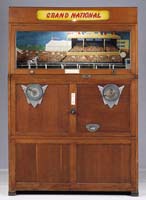 NEAL’S CARRIAGE PAINTS TRADE SIGN. Wooden display featuring a miniature wagon wheel with multicolored spokes promoting the line of carriage paints from the Acme White Lead and Color Works, Detroit, Michigan. Base of display has an applied paper label testifying that “Varnishing Unnecessary”, “One coat is all that is required”, “The cost will not exceed $1”. SIZE: 14″ w x 18″ h. CONDITION: Good to very good with original, slightly worn painted surfaces. 1-8256 (300-500)