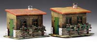PAIR OF GEBRUDER HEUBACH CHARACTER BOY DOLLS. First is a boy dressed in Russian style costume, incised “Germany” and green stamp. Socket head boy has molded painted features and is on fully jointed wood and composition body. The second is dressed in a brown velvet jacket is a bisque shoulderhead incised with the Heubach square mark and is on a leather body with bisque forearms. SIZE: Each is 11″ (28 cm) CONDITION: Both are in excellent condition other than the body of the Russian boy which has had an old light repaint. 1-8372, 1-8392 RS (600-900)