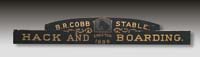 OUTDOOR UNDERTAKER GLASS SIGN. Tombstone shaped reverse painted glass sign reads “394 Office W.H. Graham Undertaker”. Sign features a copper frame with a copper clad wood frame. SIZE: 24″ w x 30″ h. CONDITION: Glass is cracked in half; some lifting to reverse paint. 1-8152 (150-300)