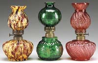 THREE CONTEMPORARY ART GLASS OBJECTS. 1) Cylindrical form blue vase with haphazard millefiori-type decoration in various colors. Signed on the underside in script with copyright ’85 and illegible signature. 2) Deep red iridescent vase reminiscent of a human heart with brilliant iridescent blue and purple finish. Signed in script “Coleman 1985″ on the side. 3) Conical art glass object with pink iridescent ground decorated with blue, green and gold threading to interior. Unsigned. SIZE: 8-1/2″, 3-1/2″ and 3-1/4” respectively. PROVENANCE: From the Collection of Dr. & Mrs. Ivan Cohen. CONDITION: All three are very good to excellent. 5-62882 (100-300)