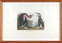 FOUR JAPANESE ARTWORKS. Three woodblock prints, one signed “Kunichika” together with a painting of a fish. Two framed. SIZE: Fish: 10-1/4″ x 9-1/4″ sight. Women: 14″ x 9″. Caricature: 6-3/4″ x 5-3/4 sight. Kunichika: 14″ x 9-3/4″. PROVENANCE: From a fine Islesboro, Maine home. CONDITION: Painting with slight foxing. Woodblock of two women in fair condition. Woodblock caricature faded. Kunichika woodblock retains strong color, but with horizontal creases through middle of print. Generally good overall. 9-23861 (200-400)