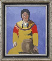 JAY HALL CONNAWAY (American, 1893-1970) ROCKY COAST. Oil on canvas summer scene shows a rugged rocky coastline with a figure seated overlooking the ocean. Signed lower right “Connaway”. Housed in a modern wood frame with linen liner. SIZE: 15″ x 21-3/4″. PROVENANCE: Private Cleveland Collector. CONDITION: Relined, minor inpainting, very good. 9-23442 (2,000-3,000)