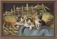 LAURENCE PHILIP SISSON (American, 1928-) “MAINE WHEN”. Outstanding large oil on masonite coastal Maine scene shows an inlet with pebble and sand beach having pools of water. The left & right coastlines with trees and rock. All under a colorful pink cloud sky. Signed lower left “L Sisson”. Titled on reverse. Housed in a gilt wood frame with wide linen matte. SIZE: 42″ x 60″. CONDITION: Very good. 9-22364 (6,000-8,000)