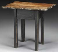 GEORGE KUNKEL (American, 1922-1984) “MONHEGAN INLET, 1960”. Lacquer on masonite abstract scene shows stylized trees against black water, yellow land and gray skies. Signed lower right. Housed in a weathered wood frame with white liner. The frame having two lucite plaques with title & artist and indicating belonging to the Montclair Art Museum. SIZE: 18″ x 36″. PROVENANCE: Montclair Art Museum; Christie’s Sale #2430, lot 161. CONDITION: Very good. 9-24597 (1,000-1,500)