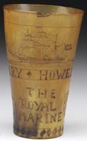 TWO CARVED FIGURES. 19th century buffalo horn figure of the goddess Quan Yin together with an African carving of a crocodile carved from a tusk. SIZE: 1) 8-1/4″ h. 2) 9-1/2″ l. PROVENANCE: From a fine Islesboro, Maine home. CONDITION: Structurally very good, the horn dyed. 9-23878 (200-400)