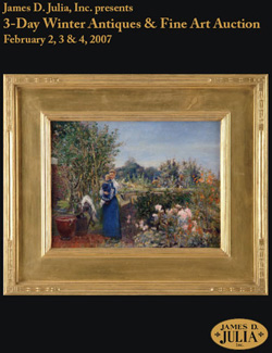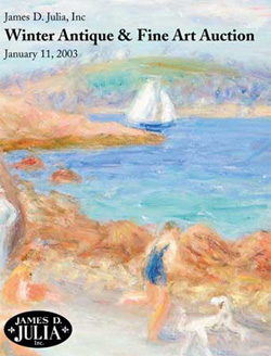 Thank you to all of our clients who helped make our February 8 & 9 Winter Fine Art, Asian & Antiques Auction another spectacular success. A standing-room only crowd packed the gallery for what was the last Fine Art, Asian & Antiques Auction to be held in our Fairfield, Maine auction facility. Hundreds of bidders from around the world also showed strong participation via phone and internet, generating over $3.3 million in gross sales. After the hammer finally fell silent, 48 lots made $10K or above. In addition, 9 lots realized $25K or more, and 10 lots broke the $50K mark!