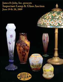 Thank you to all of our clients who made our December 1st Rare Lamps, Glass & Fine Jewelry auction a tremendous success with over $2.5 million in gross sales! The bidding was fast and furious throughout the auction, with bidders from all over the world competing over top-tier selections from Tiffany, Handel, Daum Nancy, and Galle, among others. After the hammer finally came to rest after a long and exciting day, 40 lots made $10,000-$25,000, 9 lots sold between $25,001 and $50,000, and a remarkable 8 lots realized over $50,000, pushing the total gross over $2.5 million.
