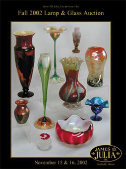 This comprehensive sale rounded out with a great variety of pottery, bronzes, paperweights, and other decorative art selections. Lot 1283, a very appealing 7” tall Wedgwood Fairyland Lustre Goblin vase, decorated with brown goblins sporting blue wings, realized $10,890.