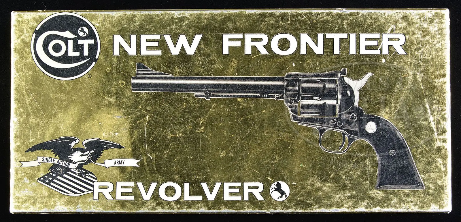 Additional information: The gun was shipped from Colt to Elmer Keith on a special loan account. Notation on the factory order states “Selected & Targeted” *SCARCE COLT NEW FRONTIER SINGLE ACTION REVOLVER OF ELMER KEITH, WITH BOX.SN 4932NF. Cal. 45 Colt. Blue & color case hardened with 7-1/2″ bbl, ramp front sight that has Mr. Keith’s gold insert. Left side of bbl is marked “COLT NEW FRONTIER S.A.A. .45” and left side of frame has 2-line 3-patent dates and rampant Colt. Frame is flat top style with adjustable rear sight. Mounted with smooth 2-pc ivory grips. SN was observed on bottom of frame, left side of front & back straps under the grip and last three digits of matching SN on front face of cylinder with rampant Colt on rear face. Accompanied by its orig gold & black 2-pc box. This revolver was produced in about 1964. Special Note: This item contains or is made of ivory. Do not bid on this lot unless you have read and agreed to our “Ivory Position Statement” and the “Waiver of Legal and Financial Risk to James D. Julia in regards to your Purchase of an Ivory Object”. This information is located in our catalog on pages 30 and 31. PROVENANCE: The Elmer Keith Estate Collection. CONDITION: Extremely fine, as new, all matching, shows very little if any use. Bbl & ejector housing retain 99%+ glossy midnight blue and the frame 99%+ brilliant case colors; hammer retains all of its orig blue on the edges with bright polished sides; cyl, trigger guard & back strap also retain 99%+ brilliant, glossy midnight blue. Grips are sound with a light ivory patina. Mechanics are crisp, brilliant shiny bore. Box is sound showing light edge wear and a couple of nicks. 4-48047 JR316 (1,500-2,000) – Lot 1010