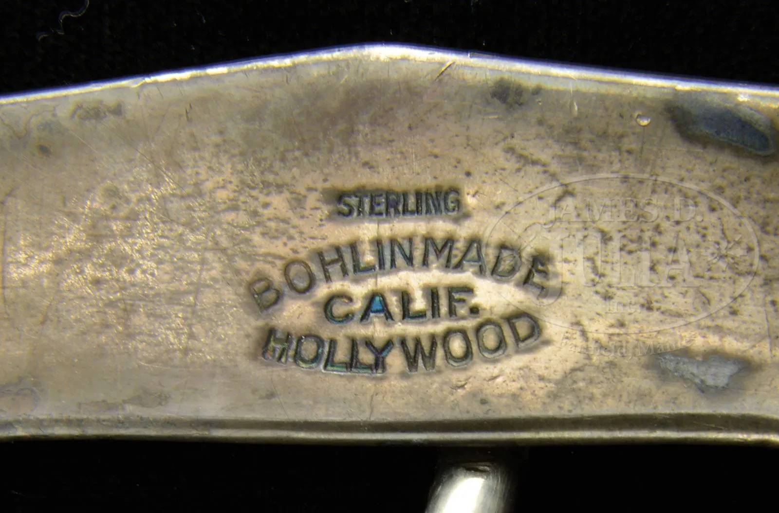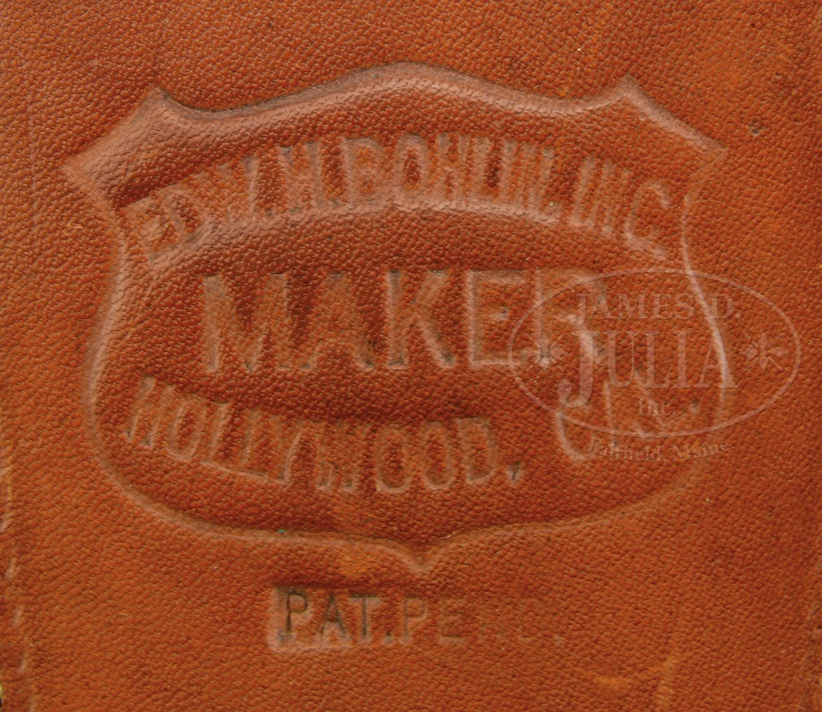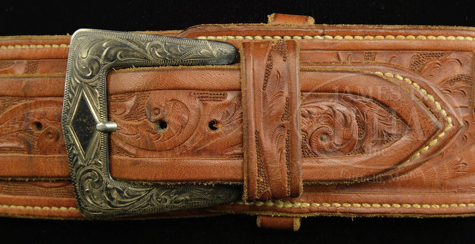 LOT OF THREE BOHLIN BELT/HOLSTER RIGS, ONE SPARE BOHLIN HOLSTER & SINGLE ACTION HOLSTER THAT ALL BELONGED TO ELMER KEITH.Three spectacular lined, tooled brown leather buscadero belt & holster rigs made by the famous Hollywood empresario Edward H. Bohlin Co. All three rigs are tooled nearly identical, with full coverage on the belts, holsters and holster skirts. All have thirty, caliber .44-45 tooled cartridge loops. 1) 3″ belt with a short drop, open toe holster, tooled to match, with a spring-loaded thumb latch and matching strap that has sterling Bohlin buckle set engraved “EK” on the buckle. The buckle billet on the belt is mounted with a matching sterling engraved Bohlin buckle set, also engraved “EK” with matching tip on the tongue. Holster is for a 7-1/2″ Colt Single Action Army revolver or possibly Ruger Super Blackhawk revolver. 2) 2-1/2″ belt that has the drop part of the belt wider than usual and supports the matching tooled brown leather holster with engraved flat sterling silver Bohlin buckle. The buckle billet is mounted with an engraved flat sterling Bohlin buckle. Holster also has the spring-loaded thumb tab and is for a 4-3/4″ Colt Single Action Army revolver or short barreled Ruger Super Blackhawk revolver. 3) 2-1/2″ belt that has a slot within the belt, not on a drop, and supports a matching tooled, brown leather holster for 4-3/4″ Colt Single Action Army or short barreled Ruger Super Blackhawk revolver. Belt has a fine engraved Bohlin flat buckle set with “EK” engraved on the buckle. Tongue billet has a Bohlin sterling silver tip & a matching tip at the attached end of the tongue. Holster has a matching miniature buckle set on the strap with “K” engraved on the buckle. 4) Extremely beautiful tooled, brown leather holster with full tooled skirt and an engraved Bohlin sterling buckle set on the strap with “EK” engraved on the buckle. Holster has the spring-loaded thumb tab. Each of the belts & holsters are marked with the cartouche of the Bohlin Co. #3 above has the small cartouche and all the others have large cartouche. These belts & holsters were all presented to Mr. Keith at one time or another over his career. PROVENANCE: The Elmer Keith Estate Collection. CONDITION: 1) Extremely fine, slightly dusty, shows very little use, completely supple & usable. 2) Extremely fine, slightly dusty, shows light use with some green verdigris by the cartridge loops from long term contact with brass cartridge cases, supple & usable. 3) Very fine, overall retains most of its original finish, showing moderate to heavy use with green verdigris in the cartridge loops from long term storage contact with brass cartridge cases, supple & usuable. 4) Extremely fine, shows very little use and retains virtually all its orig brown finish. 4-48038 JR266 (5,000-10,000) – Lot 1032 Click here to view provenance
