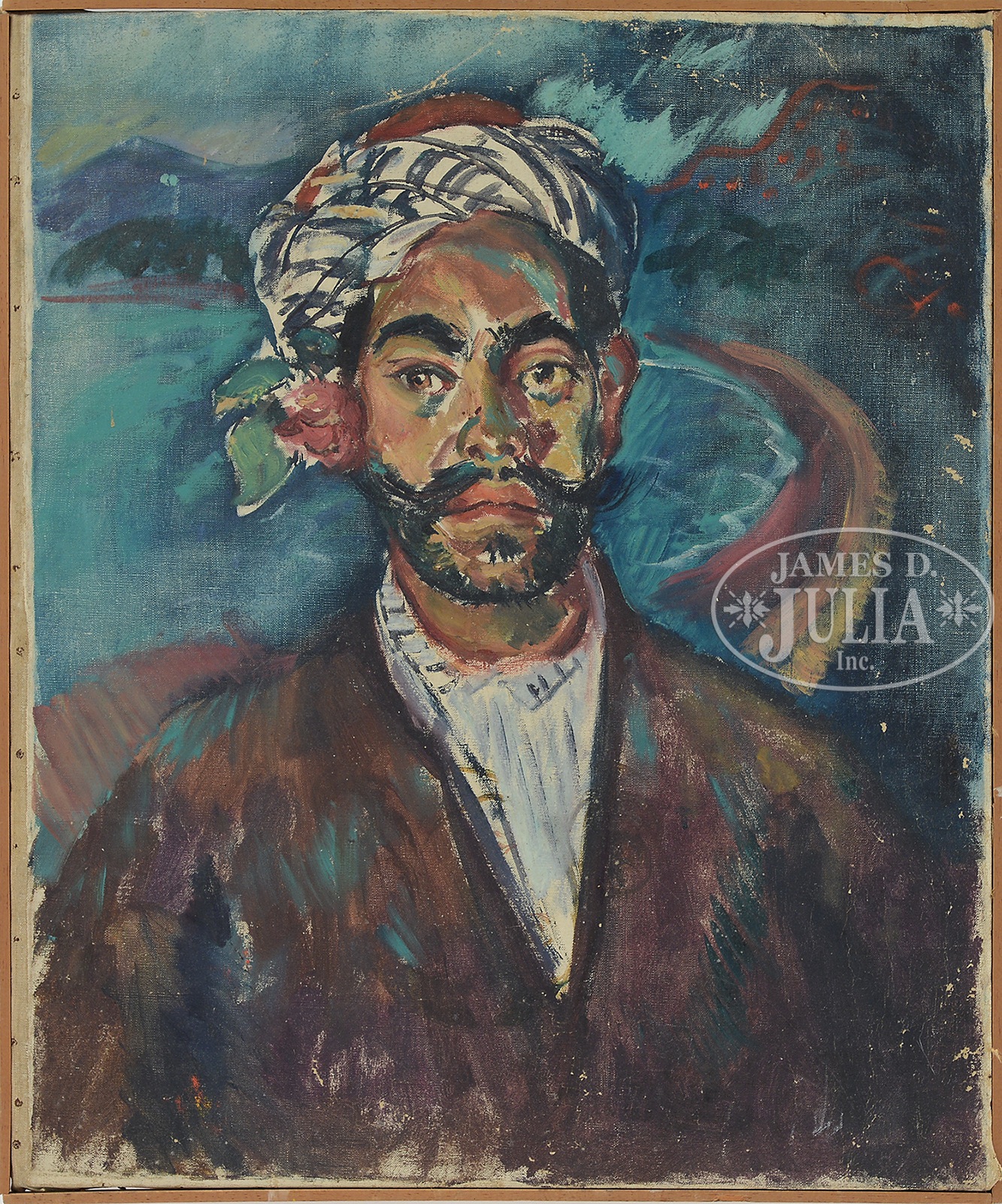 Oil on canvas Housed in slat wood frame Signed, dated, titled and inscribed on verso “An Arab Friend/ for Ellen 1921 / WPeirce / Hammamet, Tunisia” SIZE: 24″ x 29″. Overall: 24-1/2″ x 29-1/2″ PROVENANCE: By descent within the family of the artist. CONDITION: Good, with surface dirt, and abrasions. 50645-4 (300-500) – Lot 1051