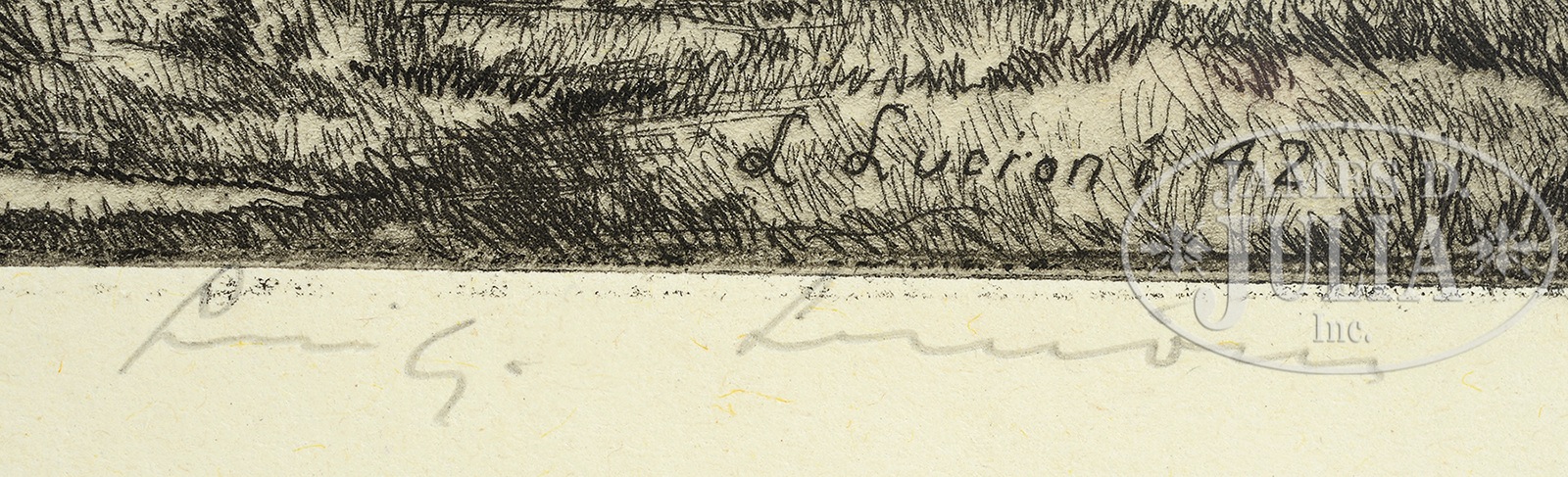 TWO FRAMED AMERICAN INTAGLIO PRINTS (20th century).Including: Stow Wengenroth (American, 1906 – 1978) “Boothbay Harbor, Maine”, Edition of 75, c. 1937, lithograph signed lower right “Stow Wengenroth”; and Luigi Lucioni (American, 1900 – 1988) “Two Silos”, signed lower right “Luigi Lucioni” etching. Both matted and framed under glass SIZE: Lithograph 11-1/4″ x 15-3/4″. Etching 8″ x 12-1/2″. Overall largest 19-1/2″ x 23-1/4″ CONDITION: Very good, not examined out of frame 49111-17 (500-800) – Lot 1054