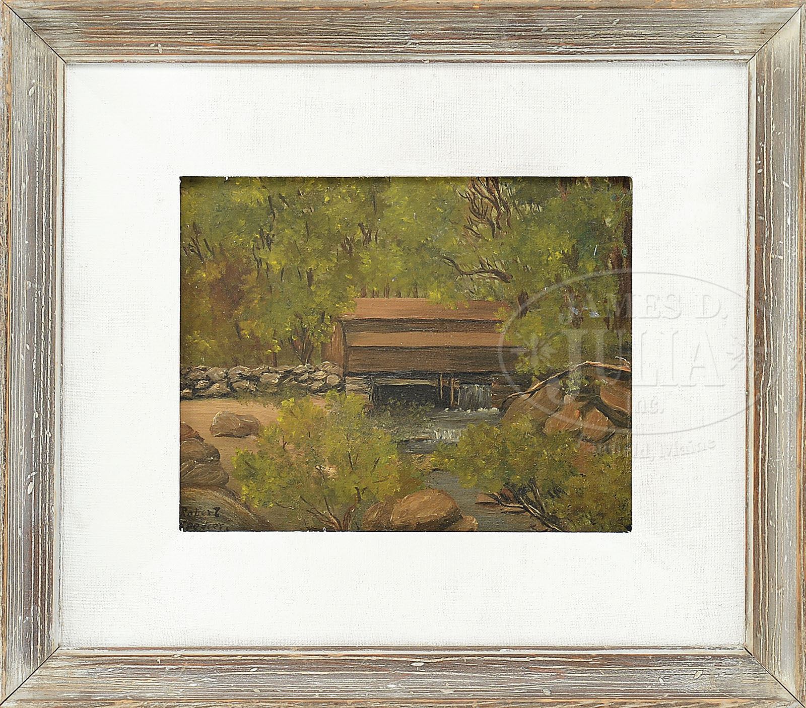 ROBERT SPENCER (American, 1879-1931) MILL IN THE WOODS. Oil on board Housed in a wood frame with white liner Signed lower left “Robert Spencer” SIZE: 8″ x 10″. Overall: 14-1/2″ x 16-1/2″ CONDITION: Very good 9-92026 (4,000-6,000)