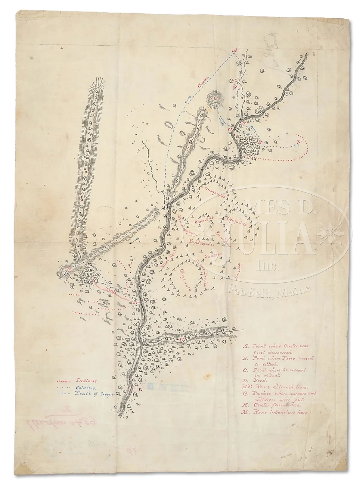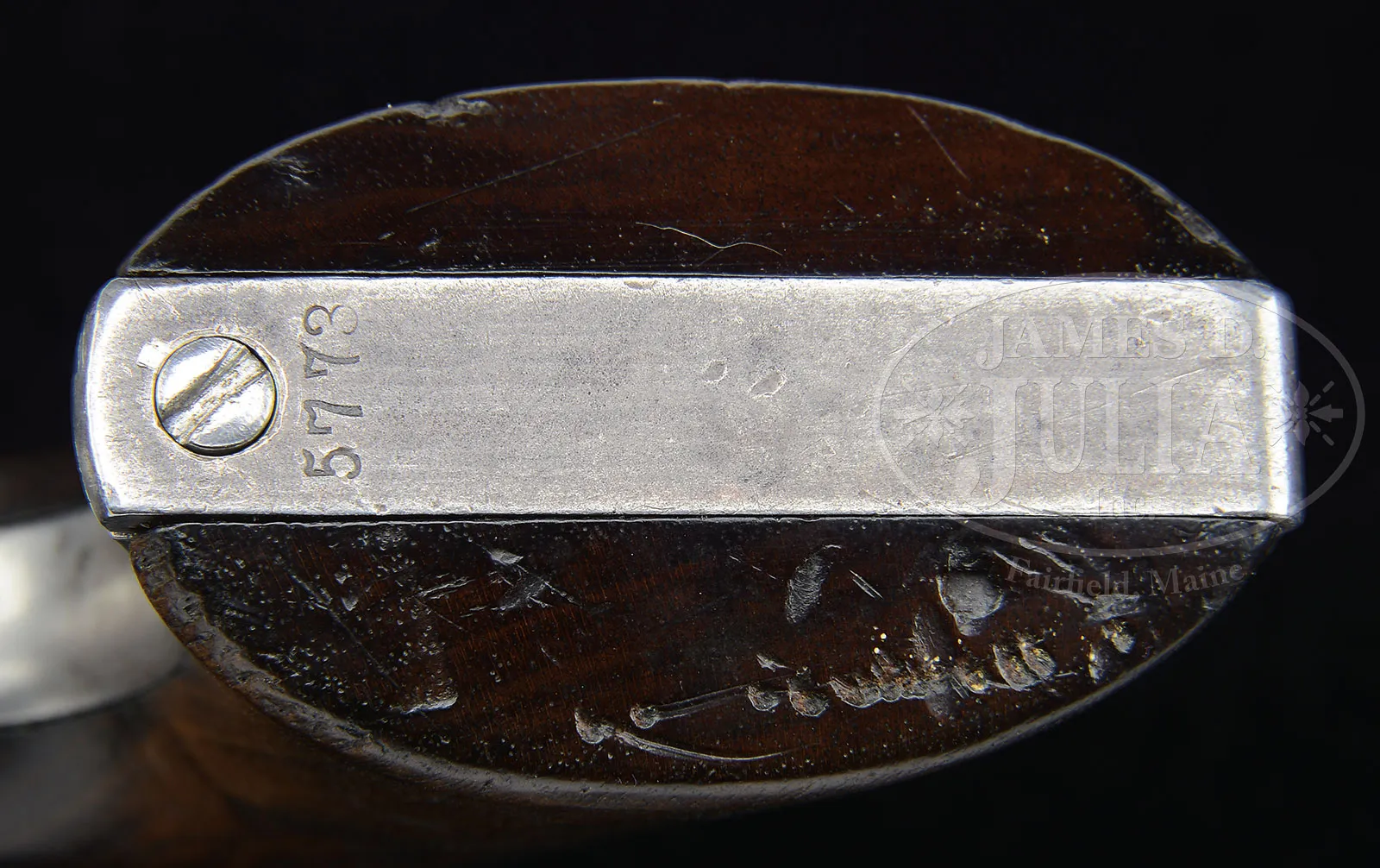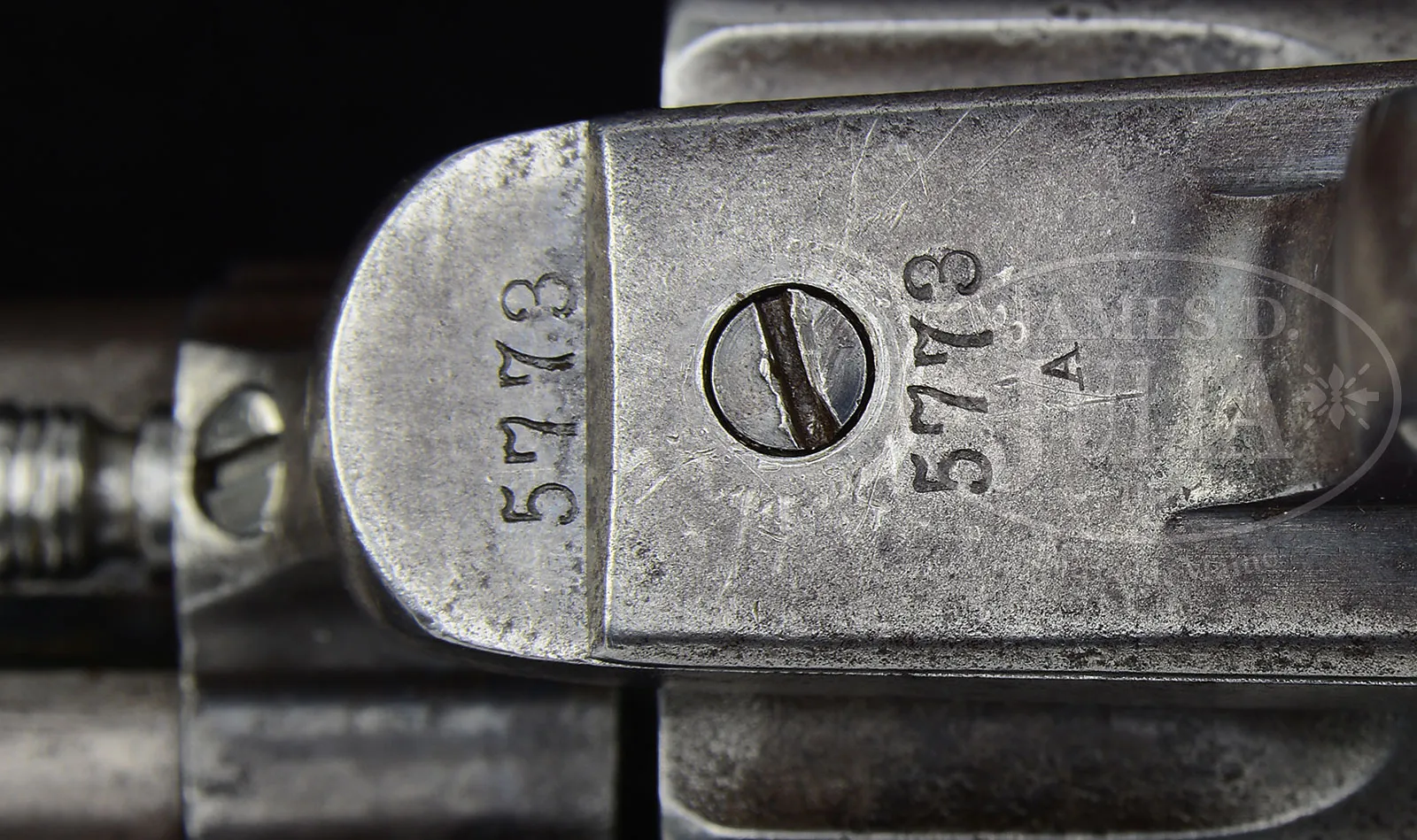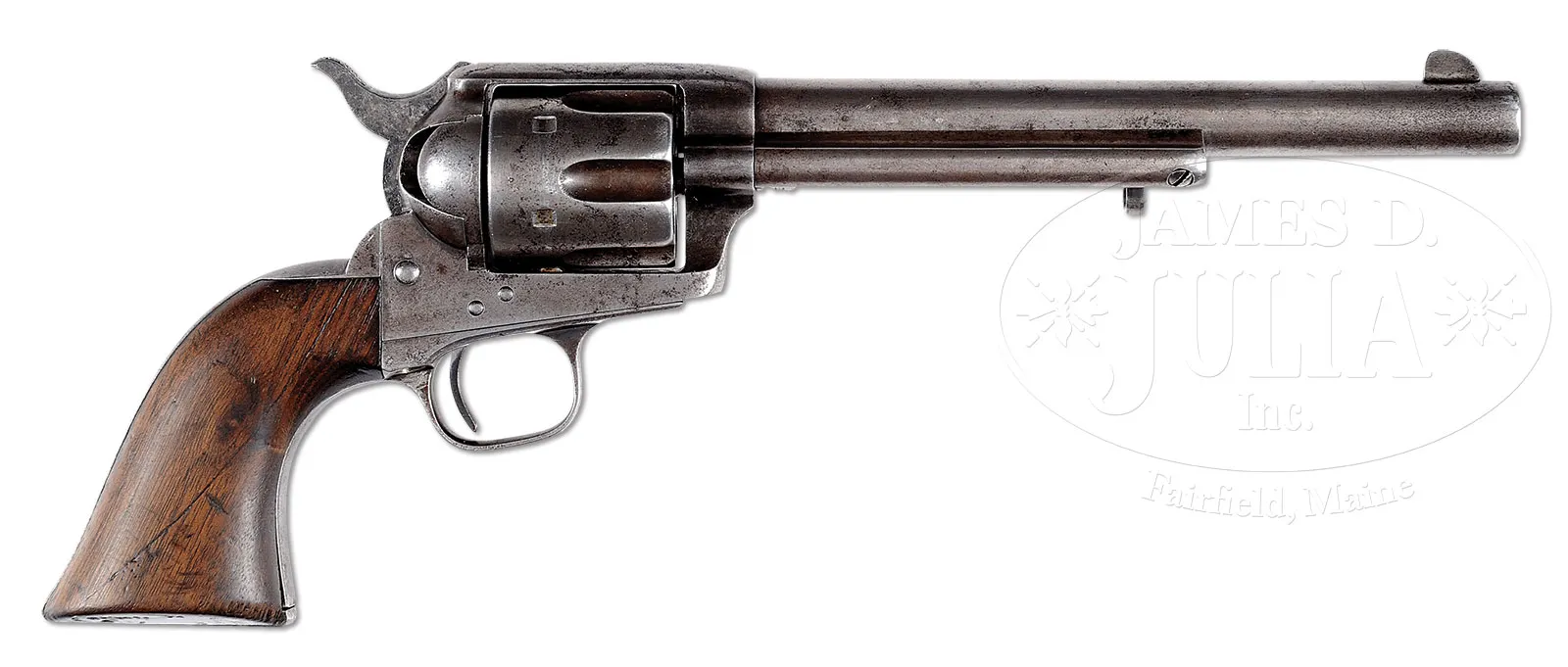 Please Note: We misspelled John Kopec’s name in the description. It is spelled Kopec NOT Kopek. COLT SINGLE ACTION ARMY SN 5773 POSITIVELY PROVEN TO HAVE BEEN USED BY ONE OF CUSTER’S MEN DURING THE INFAMOUS BATTLE OF THE LITTLE BIGHORN.SN 5773. Cal. 45 Colt. Usual configuration with 7-1/2″ bbl, full front sight and 1-line script letter address with serifs at each end. Left side of frame has 2-line September 19, 1871 and July 2, 1872 patent dates along with a small “U.S.” Mounted with 1-pc walnut grip with matching SN in the backstrap channel. Ejector housing is orig first type with bullseye ejector rod head and base pin is orig type with dimpled ends. Bottom of the bbl under the ejector housing is marked with matching SN which is also found on the cylinder. Bottom of the bbl also has a tiny “A” (Orville W Ainsworth) sub-inspector initial along with a small “P”. Mr. Ainsworth’s “A” inspector initial is also found on the trigger guard below the SN and on the cylinder which also has a tiny “P” inspector initial. Top of the backstrap also has a small “A” sub-inspector initial. The grip shows heavy wear which has obliterated the Ainsworth cartouche and bottom edge of grip is somewhat battered which also obliterated his inspector initial. Front bottom edge of the ejector housing is beveled rather than having a sharp edge as it originally left the factory. Bottom front edge of the buttstrap is also lightly beveled instead of being a sharp edge as was original on these early revolvers. This was often done at the arsenal level and in the field. The reason being that sharp edges on the ejector housing quickly wore the holsters and the sharp edge of the buttstrap was uncomfortable for the shooter. Cylinder has large, wide stop notches without approaches but shows slight battering from the lock bolt in those areas. Loading gate has the assembly number “710” which is also found on bottom of frame, under the trigger guard. A large portion of the revolver has moderate to heavy blood pitting, especially on the cylinder, recoil shield and frame. This Colt SA Army is a true historic American treasure. It is the only documented, complete and original Colt SA Army that can be proven to have been part of one of the greatest military cavalry disasters of all time. In the summer of 1876, General George Armstrong Custer together with 12 companies of approximately 800 men were on the trail of Sitting Bull and his band of Sioux followers. Custer’s command was part of a 3 prong effort to source, capture and bring back this large group that had left the reservation. Custer and his men discovered Sitting Bull’s camp on the banks of the Little Big Horn River on the 25th of June and for various reasons decided to immediately attack. Custer divided his command into 4 units; 3 of which would participate in the battle. His intention was to descend upon the Indian village with the 3 different units all attacking in pincer type movement. Custer, with 200+ men, intending to go to the far end of the village while Reno and Benteen coordinated and attacked on the other end of the village. When Custer initially planned the attack, he assumed it was a typical Indian village. What he did not know was that it was a massive gathering of Lakota, Sioux, Northern Cheyenne and Arapaho Indians consisting of literally thousands. Reno was the first to attack and was quickly repulsed and retreated to a hilltop defense position which he and his men desperately held. Eventually Benteen returned coming to their rescue and together they were able to repulse the attacks. Custer and his 5 companies, however, were not so fortunate. Upon attacking the far end of the village, he was immediately repulsed and his command, shortly thereafter, disintegrated. Eventually, the Indians overwhelmed Custer’s command. Custer, his two brothers, a nephew, his brother-in-law, together with his entire command were annihilated; not a single soul survived. A couple of days later, Benteen together with a command of troopers, visited the battle site and collected and buried all of their massacred brothers. What they observed was a grisly battlefield of naked, mutilated bodies and virtually nothing of value left. The Indians had removed the troopers’ uniforms, boots, holsters and of course their guns. With a few exceptions, the battlefield had been swept clean by the Indians. Few items that the Indians missed were either gathered or buried with the troopers. Documents found in the National Archives relate to a board of survey convened at Fort Rice, Dakota Territory on December 5th, 1876. That survey related to a group of 12 Springfield Carbines and 3 Colt SA Revolvers including SN 5743, 6559 and this gun, SN 5773. This group, as presented by Captain Benteen, in his words, were all rendered unserviceable in action against hostile Indians at the Battle of Little Bighorn, M.T. on the 25th and 26th of June, 1876. As such, these guns are the only that can be positively identified to have been utilized in the infamous battle. The documentation was made by one of Custer’s commanding officers who was present at the battle and the guns are identified by serial number, thus conclusively proving their existence at the battle. It must be remembered that after the battle, nearly all guns were swept clean of the battlefield by the Indians. Shortly after that, these Indians either disbanded and returned to the reservation or escaped to Canada. Initially, any Indian possessing one of these firearms kept its existence confidential. After all, at this crucial time in history, possession of evidence such as that would have likely rendered an immediate death sentence for any Indian possessing a U.S. Cavalry gun. So the guns identified by serial number and turned over by Benteen are not only conclusive battlefield participants but also exceedingly rare. Over the years, many guns have been identified as purportedly having been used at the battl