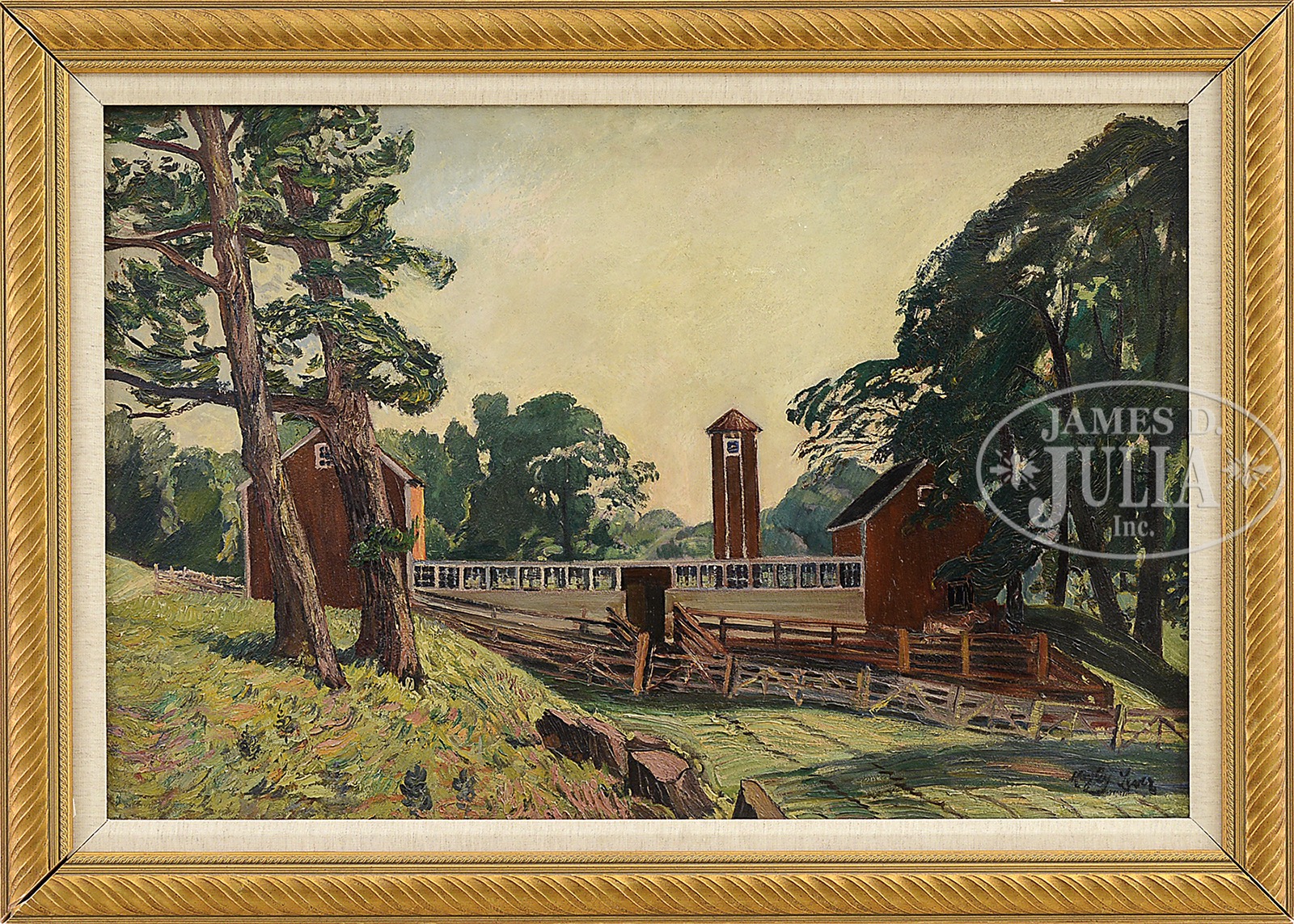 Oil on Masonite Housed in a modern giltwood frame with linen liner Signed lower right “Hayley Lever”, inscribed on verso “Moores Farm, Kensington, Connecticut 1935″ SIZE: 24″ x 36”. Overall 30″ x 42-1/2″ CONDITION: Very good 51300-1 (2,000-4,000) – Lot 1146