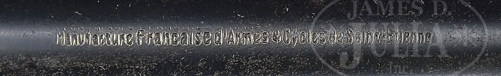 *◊ DWM 1906 FRENCH MANUFRANCE IMPORTER MARKED COMMERCIAL LUGER.SN 51677. Cal. 30 Luger. 4-3/4″ bbl with BUG proofs and full SN on bottom. “Manufacture Francaise d’Armes & Cycles de St Etienne” roll die impression on top of bbl. DWM scroll on center toggle link. Internal BUG proofs on toggle assembly. All numbered parts are matching, except for sear bar that does not match. Checkered walnut grips. Grip safety. Plain wood bottom mag. PROVENANCE: Collection of Dr. Geoffrey Sturgess. CONDITION: Very good, retaining 70% orig blue that is browning to light corrosion with scattered light pitting overall. Sear bar is refinished. 40% straw is corroding. Grips are oil soaked, dark and have moderate wear. Mag body is corroded and wood bottom is worn. Bore is worn and pitted. Mechanics are fine. 4-52773 BWS12 (2,000-3,500) – Lot 1173