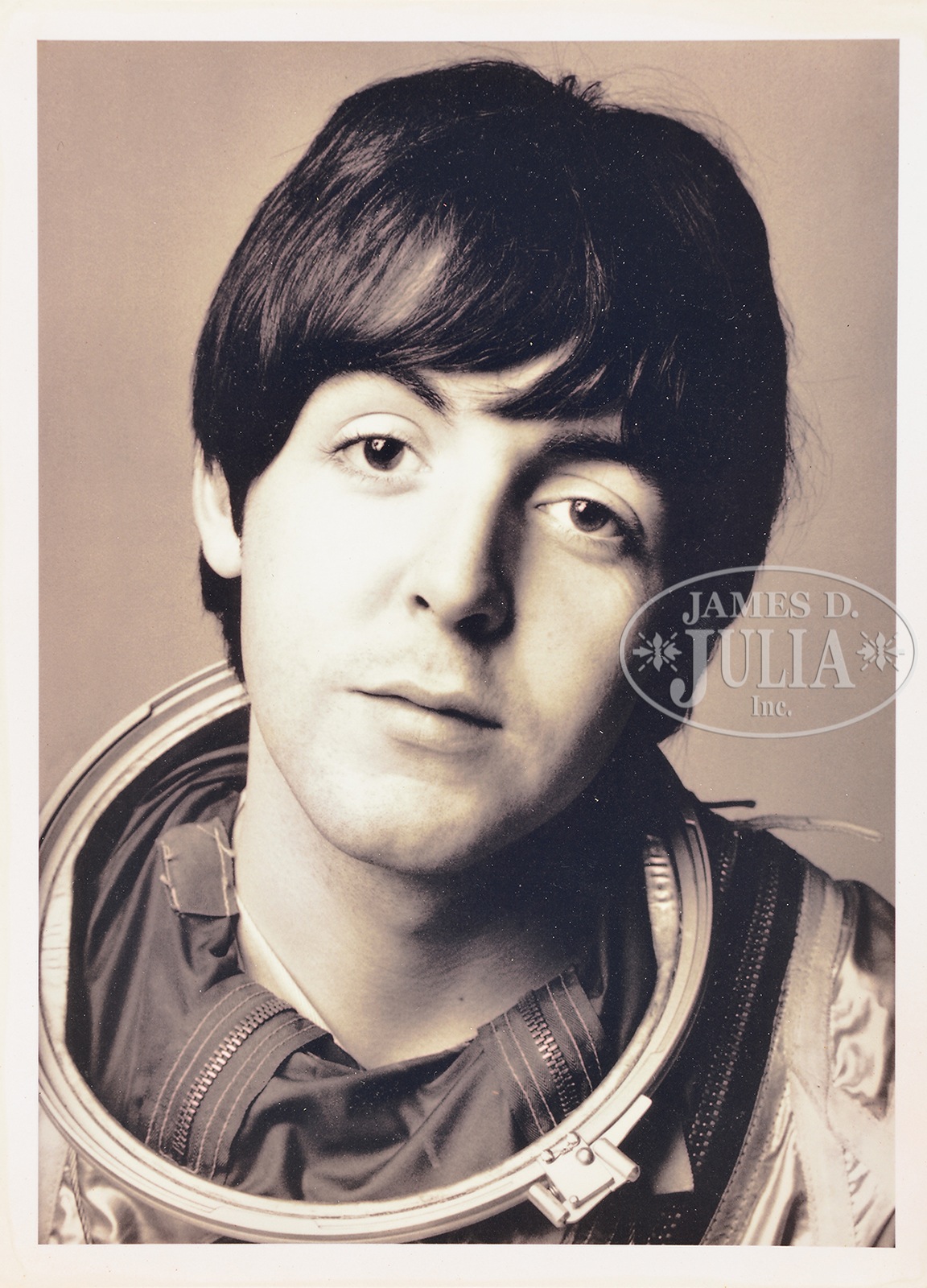 Please note additional reference material: Richard Avedon – http://www.capitalnewyork.com/tags/richard-avedon. RICHARD AVEDON (American, 1923-2004) TWO GELATIN SILVER PRINT PROOFS: LENNON & MCCARTNEY.Group of two bl. & wh. gelatin silver proof prints of 1960’s Beatles musical band members John Lennon and Paul McCartney – the latter in space suit. Each with artist’s photolith studio stamp on verso marked as follows: “John Lennon, London – Copyright 1970” and “Paul McCartney – Copyright 1969″. It is known that Avedon did not sell photographs commercially during the 1960’s, but occasionally gifted photographs. Photographs on offer considered ‘pre-art market.’ Unframed, in stiff protective sleeves. SIZE: Image: Each 5-3/8″ x 7-3/8”. CONDITION: John Lennon “1970” photo generally very good; Paul McCartney “1969” photo top left & lower right corners with mild creases, else all generally very good, with scattered browning to margins & verso from age. 9-96314 (3,000-4,000) – Lot 1193