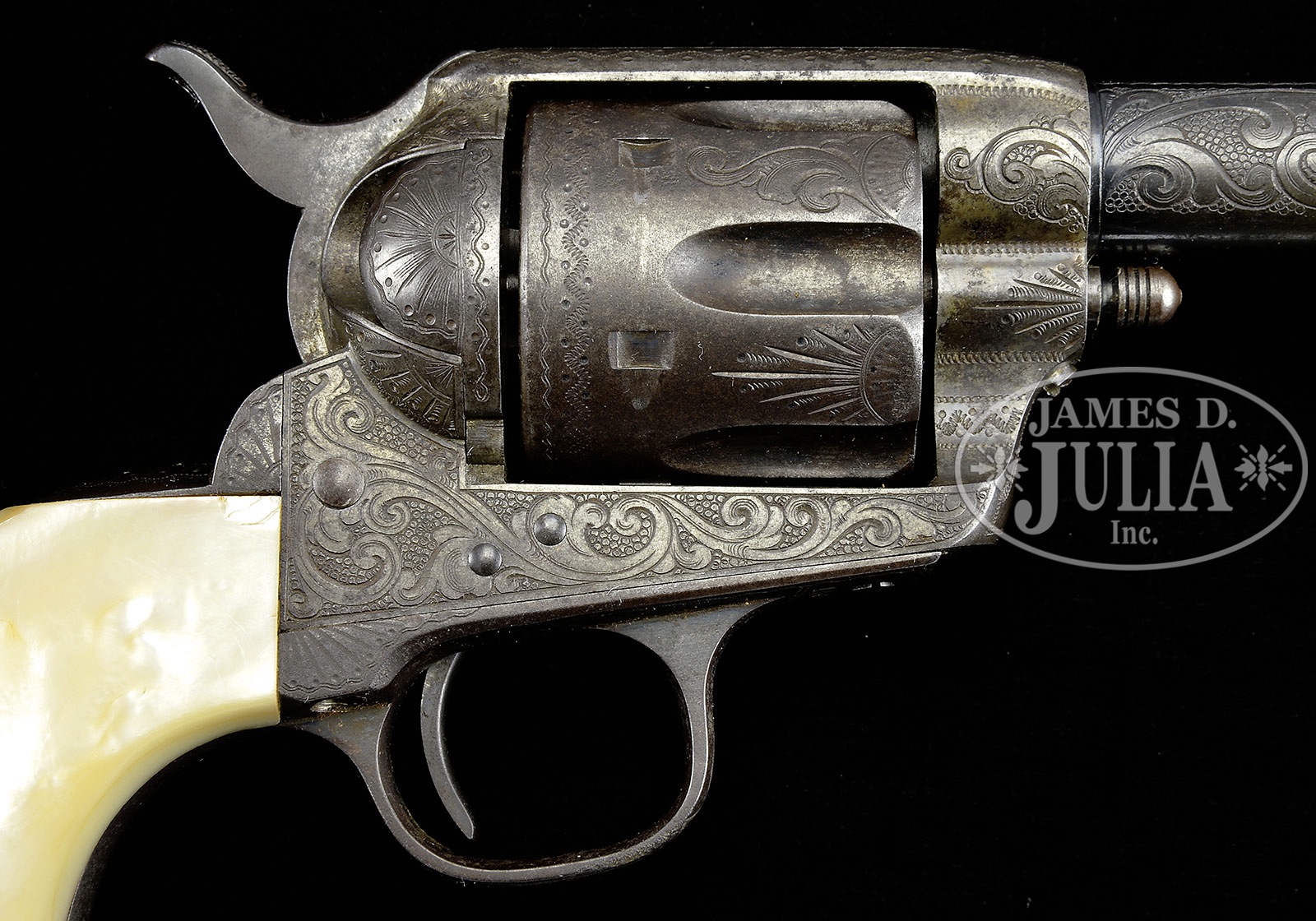 EXTRAORDINARILY RARE ENGRAVED COLT SHERIFF’S MODEL SINGLE ACTION ARMY REVOLVER.