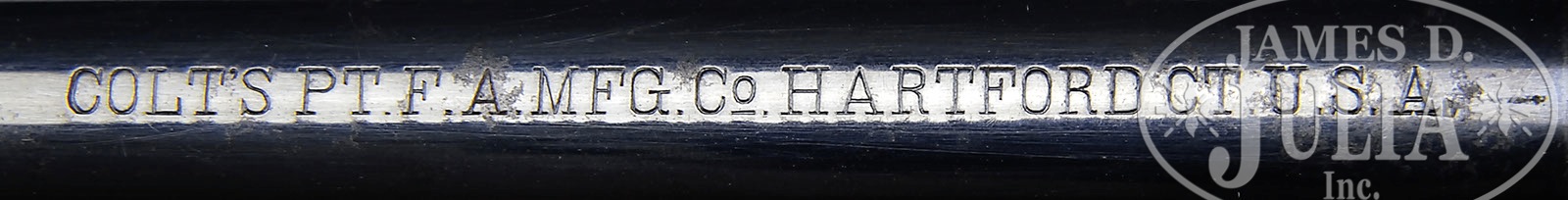 *COLT FRONTIER SIX SHOOTER SINGLE ACTION ARMY REVOLVER.SN 238305. Cal. 44 WCF (44-40). Blue & color case hardened with 7-1/2″ bbl, full front sight and 1-line block letter address with “COLT FRONTIER SIX SHOOTER” roll marking on left side. There is a tiny “44” on bottom of bbl under the base pin. Left side of frame has 2-line 3-patent dates and rampant Colt in a broken circle. Mounted with 2-pc rampant Colt hard rubber grips that have the name “HENRY GALLE” scratched inside the left grip along with the date “1903” and again “HENRY”. Right grip has the initials “H.T.” scratched on the inside. Accompanied by a Colt factory letter which identifies this revolver in caliber 44-40 with 7-1/2″ bbl, blue finish, type of stocks not listed and shipped to Sears, Roebuck & Co., Chicago, IL on Feb. 10, 1904 in a 2-gun shipment. The shipping date confirms that the grips are replacements. PROVENANCE: Tommy Rholes Estate Collection. CONDITION: Very fine. Bbl retains 96-97% glossy orig blue with only light muzzle edge wear and a couple of small nicks; ejector housing retains 94-95% strong orig blue; frame & hammer retain about all of their orig case colors, strong & bright in sheltered areas, moderately to heavily faded elsewhere; hammer colors are bright except top edge; trigger guard retains strong bright blue with the front strap thin blue; back strap is mostly a blue/gray patina with strong blue at the top & thinning on the butt strap; cylinder retains 85-88% orig blue, strong in the flutes with a light cylinder line and a few light scratches on outer diameter. Grips are sound showing light wear, turned chocolate on left side. Mechanics are crisp, very bright shiny bore, shows very little use. 4-50711 JR88 (8,000-12,000) – Lot 1273
