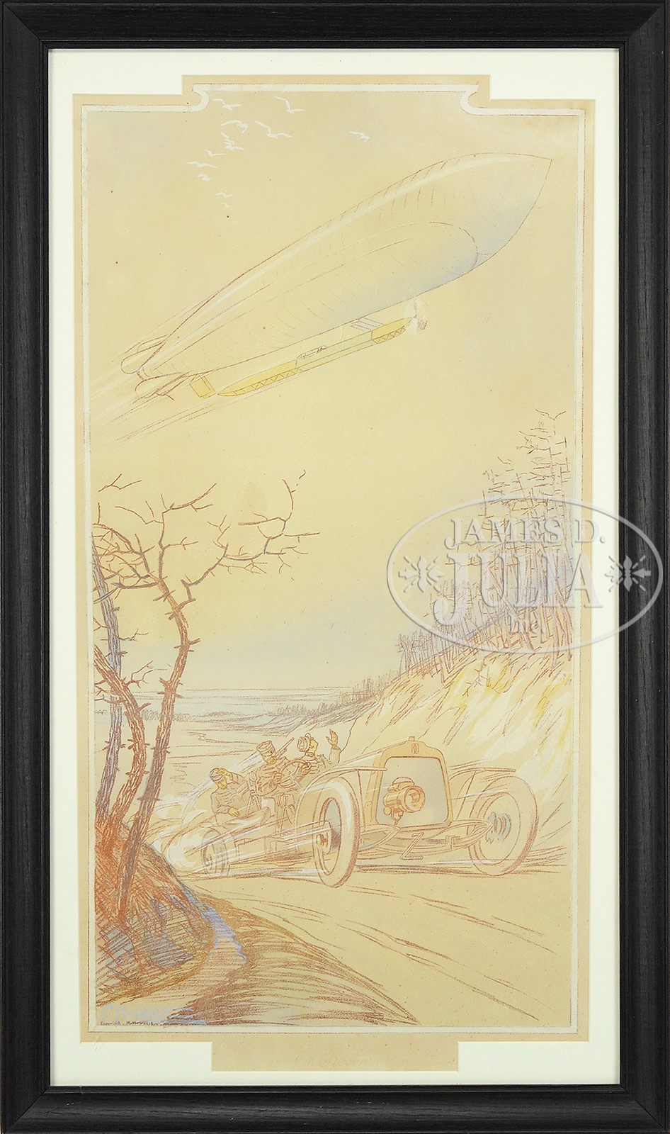 ERNEST MONTAUT (French, 1879-1909) “EN RECONNAISSANCE”.Hand colored lithograph Housed in an ebonized wood frame, matted under glass Signed in plate lower right “E Montaut, Copyright M.N. Paris” SIZE: Sight: 29-1/4″ x 15″. Overall 33-1/2″ x 19-1/2″ CONDITION: Minor discoloration to paper along edges, colors faded 51425-2 (1,000-1,500) – Lot 1287