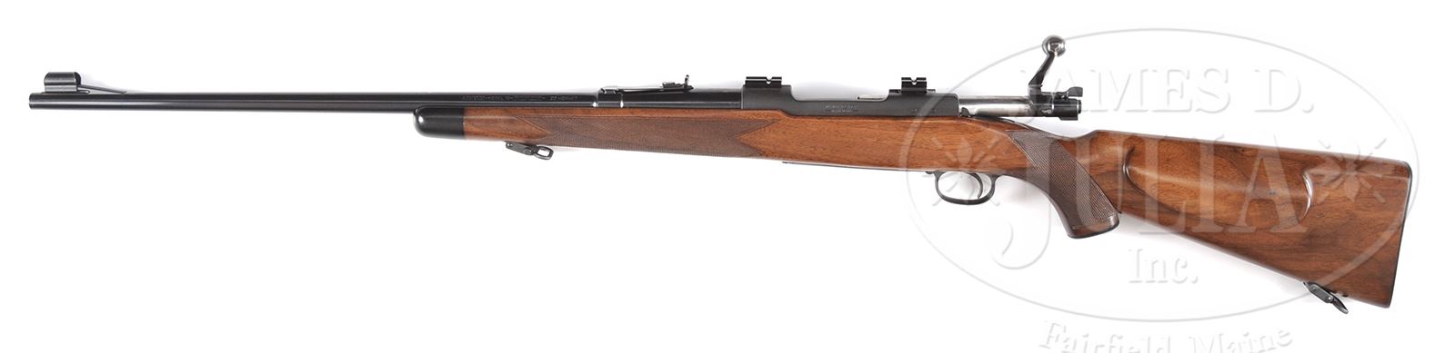 *WINCHESTER MODEL 70 SUPER GRADE BOLT ACTION RIFLE PRE-64.SN 28239. Cal. 22 Hornet. 24″ bbl, blue finish, checkered walnut stock. PROVENANCE: William Henkel Collection. CONDITION: Very fine. Bbl retains 98% blue with only slight handling marks. Bore is frosty with strong rifling. Receiver retains 98% matte blue finish. Bolt handle retains 90% blue finish. Bottom metal retains 95% blue finish with one scratch on the side of floorplate. Stock retains 95% orig varnish with slight handling marks, especially on left side. Checkered pistol grip with Winchester cap. Checkered forend with ebony cap. Steel buttplate with 90% blue. Winchester quick detach sling swivels. This is a hard to improve upon model 70 super grade in a very desirable caliber. 49394-22 TEP C&R (2,500-3,500) – Lot 1411