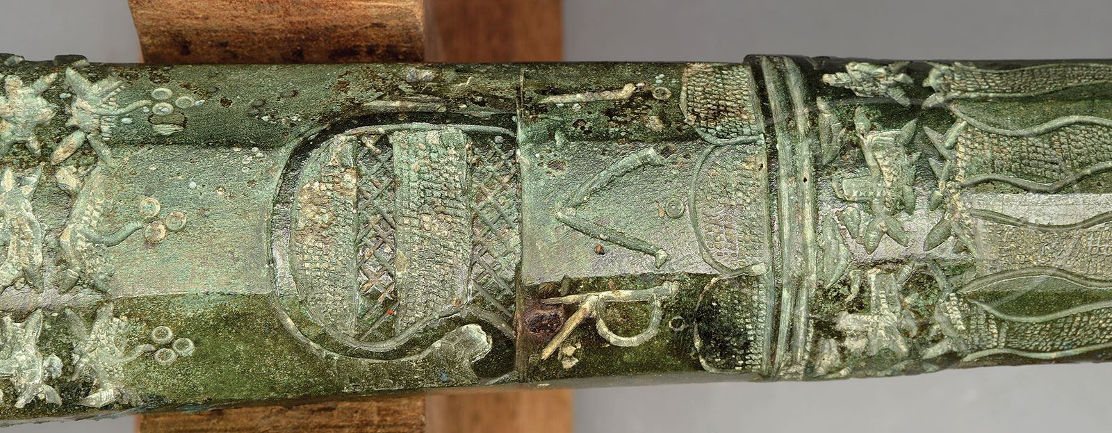 16TH CENTURY AUSTRIAN BRONZE HACKBUTT OF ULRICH VON SCHELLENBERG.SN NSN. This ancient weapon is no doubt one of the few examples outside of Europe. This bbl measures just over 3’ long with about a 5” hook giving this weapon its name. These ancient weapons date to the 1400s had an attached stock when used on castle parapets. Without missing stock bbl weighs 36 lbs. Like other very early bronze cannon this was core-cast and several iron pins are still visible at breech from casting. Bbl has heavy cast and chased relief decoration including flames on most of the flats of the semi-oct portions of bbl along with quatrefoil and floral devices. Cast into top flats above breech is the crest of Ulrich Von Schellenberg surmounted by large incised letters “IVR”. The COA, according to consignor in its asymmetrical shape with somewhat of a “handle” on right upper corner is a shape that seems to have been used only in the first quarter of the 16th century where Schellenberg was most active in military campaigns as a knight fighting for the Holy Roman Empire. Schellenberg had a stellar military career leading troops under Holy Roman Emperor Maximillian I and later under Emperor Charles V. During the battle near Vicenza fought Oct 18, 1511 he was found covered with 36 wounds and left behind, believed to be dead but Schellenberg would continue in the military. In 1529 he was among the defenders of Vienna against Sultan Suleiman the Great. “After a life full of deeds, he spent his old age in his home country where he is buried beneath the parish church quire. His contemporaries used to praise Schellenberg as a man of imposing personality, intelligence and energy, an upright, witty and cheerful knight who knew how to impress his mercenaries which were mostly composed of Swiss, who would have gone through fire and water for him”. Schellenberg’s sword of same era can be found at the Kunsthistoriches Museum in Vienna. PROVENANCE: W. K. Neale, Guernsey Island. Hampton P. Howell, Jr. Springfield Arsenal, LLC Artillery Collection. CONDITION: Overall very good to fine with easily discerned markings and no discernible heavy wear. Apparently this relic has sat fairly undisturbed for the past 500 years. Bbl overall has fine bronze patina with numerous small dings, dents and scratches expected after 500 years. There are remains of an iron loop between hook and breech that at one time retained a pin attached to match-lock stock. Bore is smooth and clear. Wood stands accompanying are sound and solid and display bbl well. 4-54211 JS239 (15,000-20,000) – Lot 1417 Video: 16th C. Hackbutt of Gen. Ulrich von Schellenberg