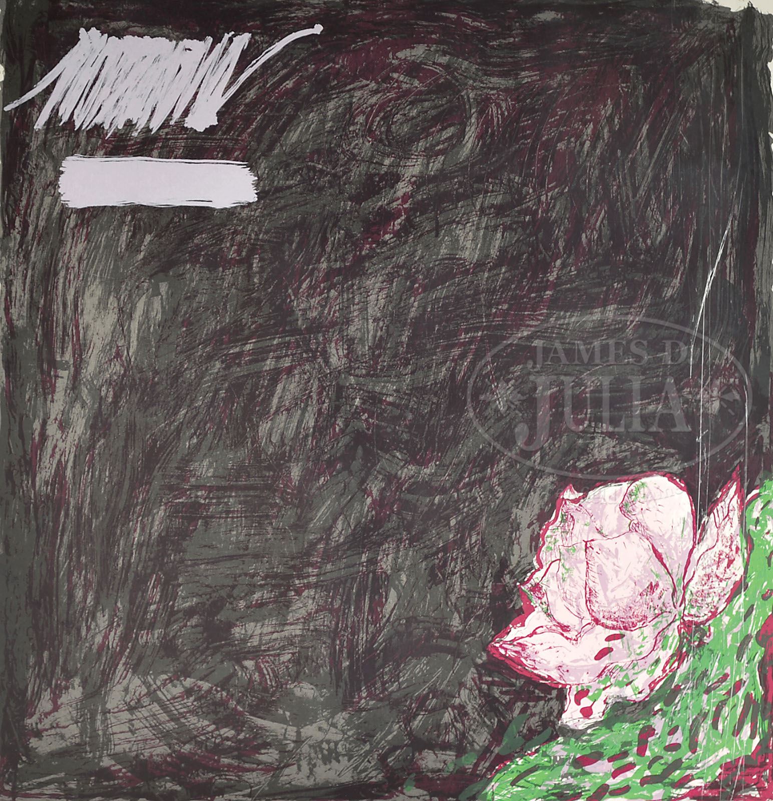 PAT STEIR (American, 1938- ) “BREADFRUIT”. Lithograph on paper Unframed Pencil signed lower right “Pat Steir ’83”, titled and numbered “72/144″ SIZE: 40-1/4″ x 35”. CONDITION: Very good. 9-29104 (300-500)