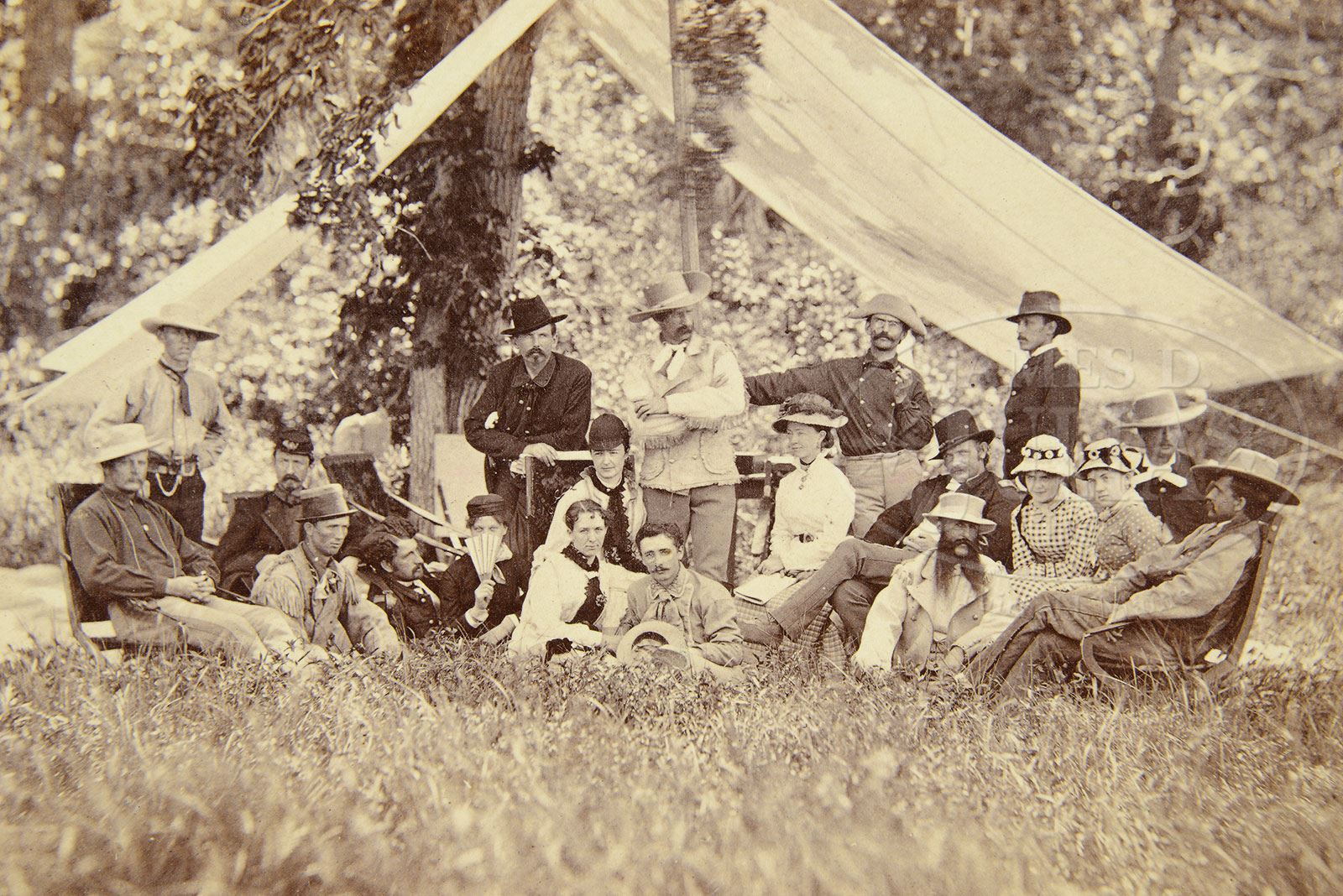 FABULOUS LARGE ALBUMEN PHOTOGRAPH OF CUSTER & OFFICERS WITH WIVES ON AN OUTING IN 1875.Katz lists this as K-140 July 1875 by Orlando Goff. This image is also shown in Frost on p. 145. This is a truly fine personal view of Custer and his inner circle less than a year when most would be dead. Image shows George & Libby Custer, brothers Tom & Boston Custer, Custer’s brother-in-law Captain James Calhoun & his wife Margaret, Lt. Edgerly, Captain Algernon Smith, Lt. W.W. Cooke, Captain Myles Keogh, Captain Thomas Weir, Dr. G.E. Lord, Emma & Nellie Wadsworth of Monroe, MI and others. PROVENANCE: Estate of George W. Yates. Butterfield’s March 27, 2002. CONDITION: Image subject is very good to fine with good detail & contrast. Image is about 8-1/2″ x 5-3/4″ mounted on about an 8″ x 10″ board. There is glue residue at the bottom 2 corners where a mat was most likely originally attached; a crack in upper left corner which does not affect individuals in image; and a 1-1/2″ tear on left side & smaller tear at bottom, again not affecting subjects of image. 4-54914 JS65 (6,000-8,000) – Lot 1440