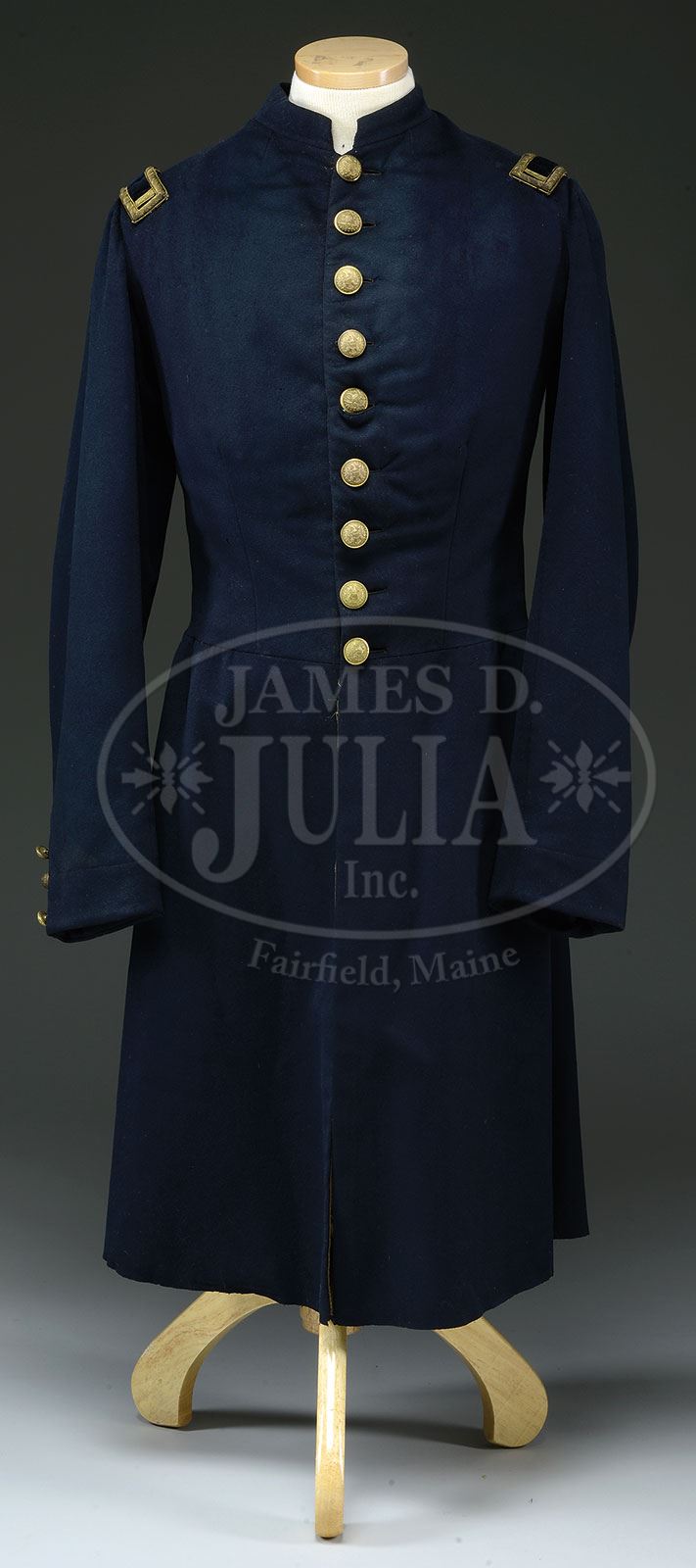 CIVIL WAR FROCK COAT OF GENERAL GEORGE CUSTER’S AIDE-DE-CAMP LT. FREDERICK A. NIMS 5TH MICHIGAN CAVALRY.